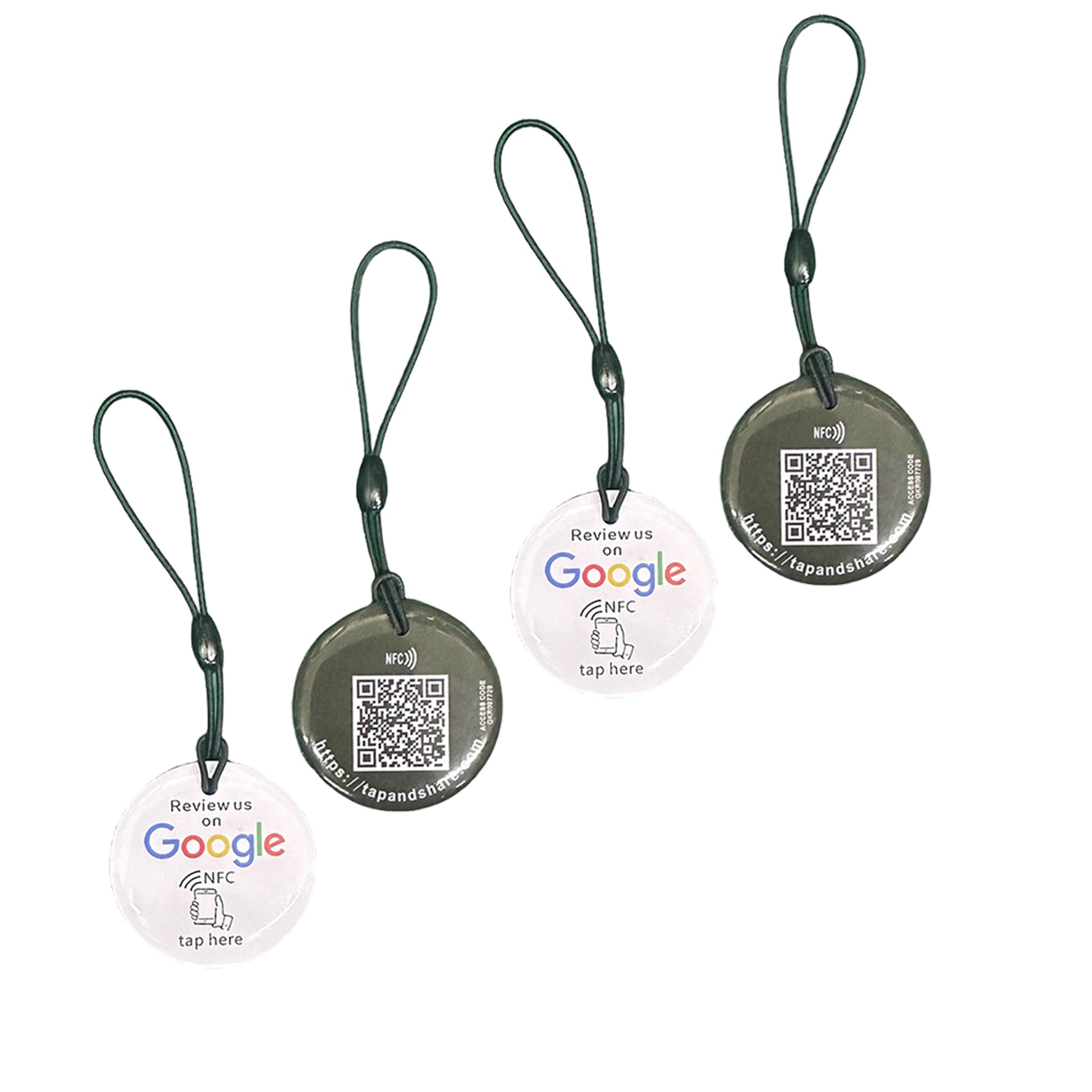 NFC Chip and Dynamic QR Code: The Social Sharing Round Epoxy Keyring is equipped with an NFC chip and a dynamic QR code. These technologies allow easy retrieval of the user's latest social sharing link by tapping the sticker or scanning the QR code.